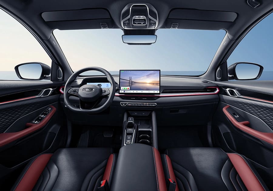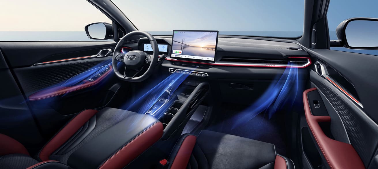 На цифровой приборной панели диагональю 8,8 дюймов отображается вся необходимая водителю информация: скорость, работа вспомогательных систем и данные о поездке. 14,6-дюймовый центральный дисплей мультимедиа³ толщиной всего 7 мм имеет высокое разрешение и быстрый отклик, работает на базе операционной системы Flyme.