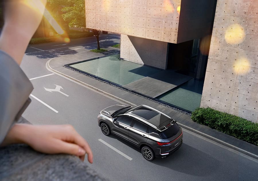 Багажник нового Belgee X50+ оснащается электроприводом³, который открывается тремя способами: с ключа, с наружной кнопки или изнутри салона, а функция настройки высоты открывания позволяет выбрать комфортный уровень подъёма багажной двери.