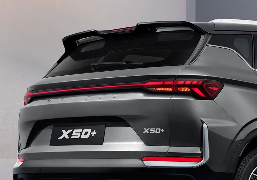 Belgee X50+ оснащён светодиодными задними комбинированными фонарями с контурной линией на багажной двери — это практичное решение для безопасности на дороге и выразительный элемент, выделяющий автомобиль в потоке.