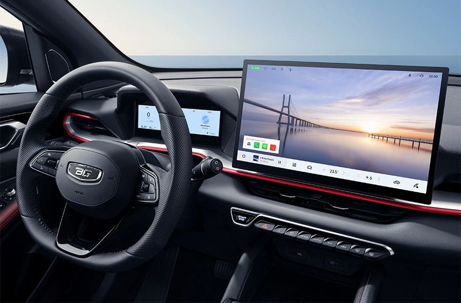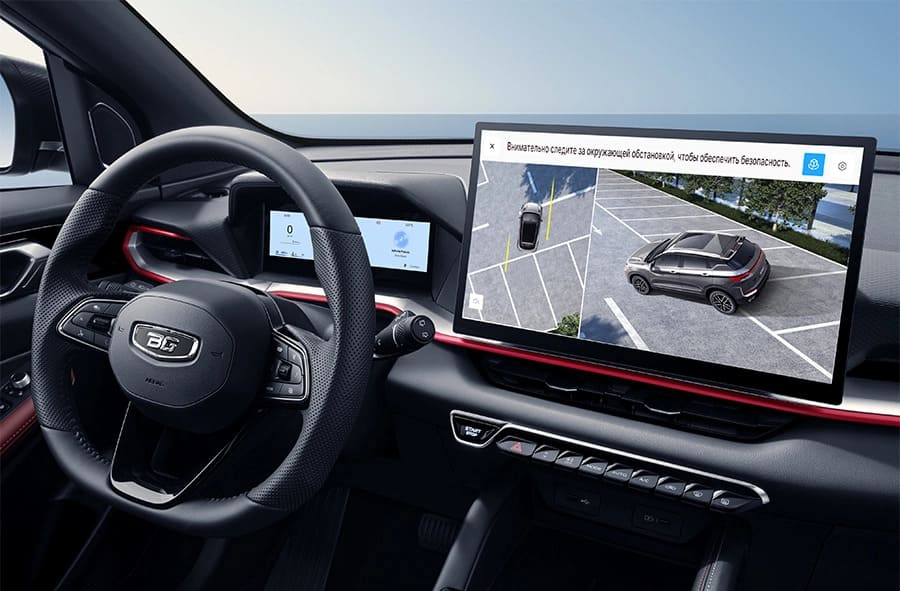 Новый Belgee X50+ отличается изысканным интерьером в чёрной или чёрно-красной цветовой гамме в зависимости от комплектации. Простор и эргономичность создают идеальные условия для комфортной поездки, а современный дизайн гармонично сочетается с безупречным исполнением всех элементов.