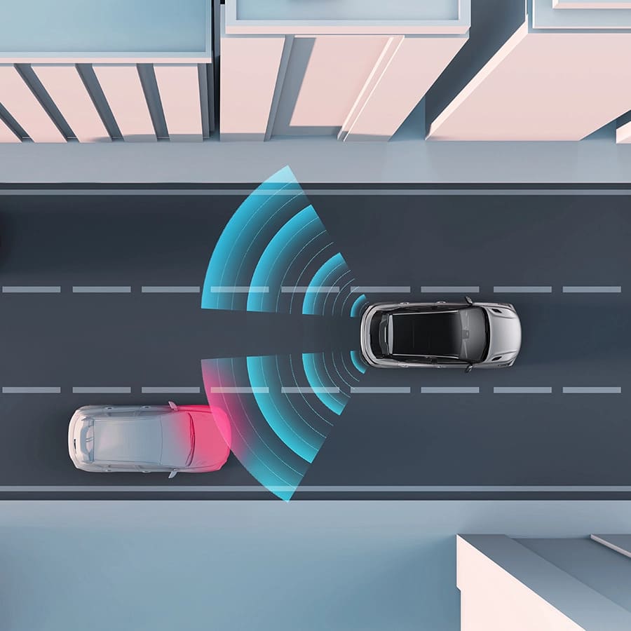 Система автоматического экстренного торможения в случае распознавания риска удара оповестит водителя об опасности, а также притормозит, если водитель не реагирует на угрозу столкновения с автомобилем или пешеходом.