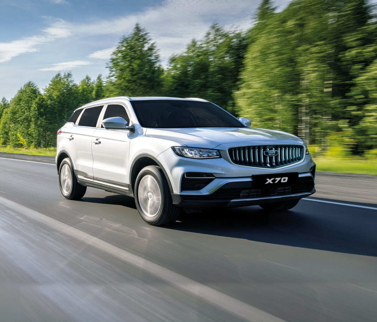 Обновленный X70 оснащен практичными 17-дюймовыми легкосплавными колесными дисками. Их дизайн в виде пяти сдвоенных спиц подчеркивает спортивный характер и визуальную динамику автомобиля.